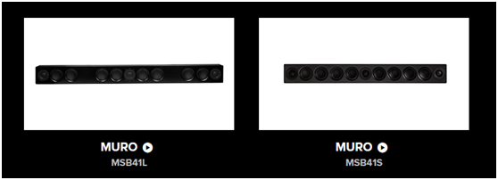 聲霸(Muro系列)揚聲器則包括MSB41S-BK/W和MSB41L-BK/S(如下圖)。滿足大尺寸屏幕和電視機用家的需求,同時纖薄的箱體設計也便於隱藏。