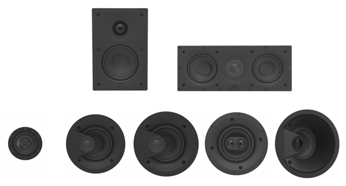 Vertex 1系列In-Wall揚聲器包括IW-V61-W和IW-VC51-W兩款(上圖第一行左至右),而In-Ceiling揚聲器則包括IC-V31-W、IC-V61-W、IC-V81-W、IC-VS61-W和IC-VT61-W(上圖第二行左至右)。