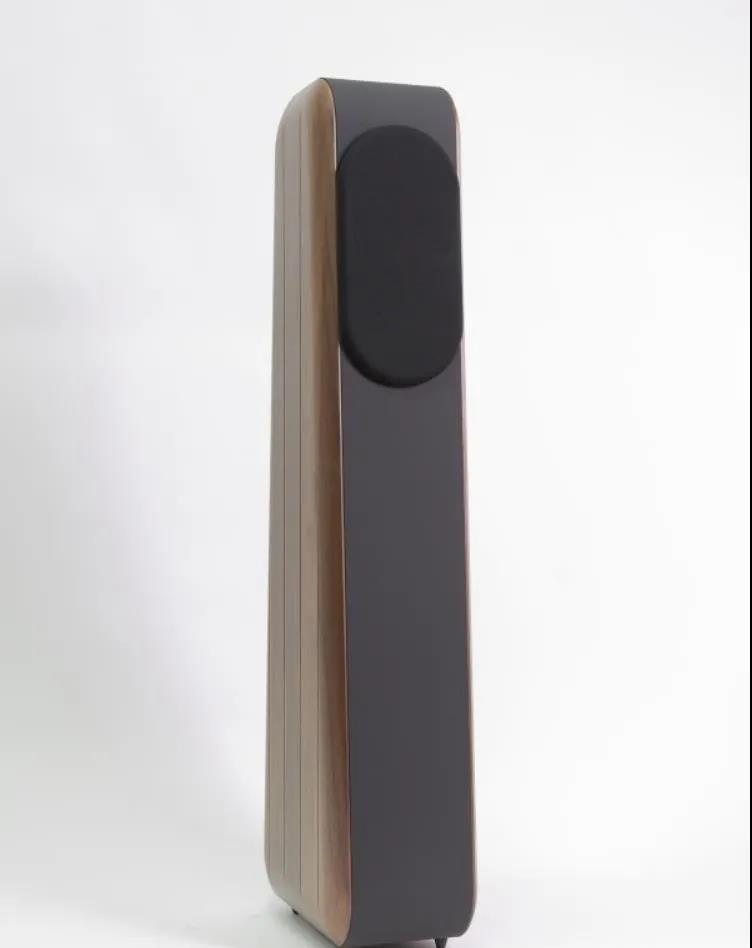 窈窕修长的身形,侧面看去,上窄下宽,有声学考虑,有美学观点,也为了机械稳定度。箱体本体以高密度板(HDF)制成,比起一般的中密度板(MDF)密度更高,质量更重。