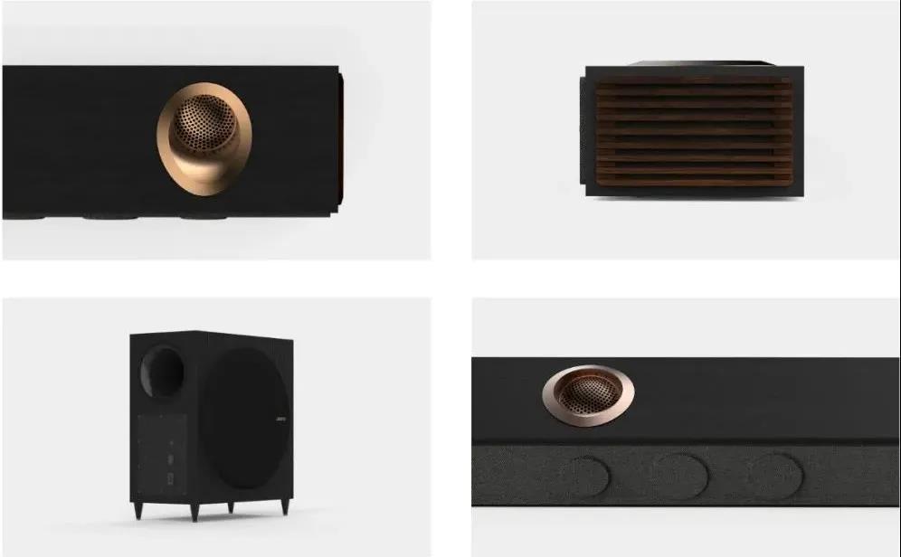 在聲學方面採用了5.1.2設計,主音箱帶有側環繞和頂部聲道,採用了杜比全景聲技術,等效於8個音箱套裝,與簡單的向上輻射相比具有更為逼真的全景聲感受。喇叭單元採用了瑞利實驗室專利聲音定向技術,準確聲場,聲臨其境。