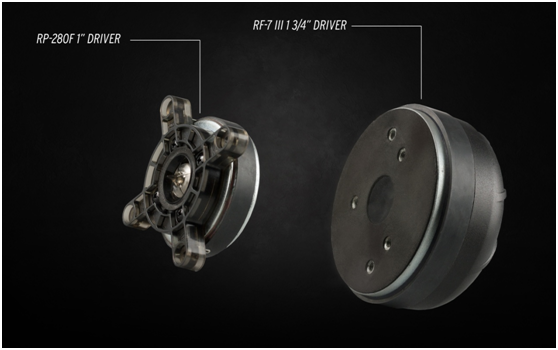 而第三代RF-7 III的進化就相當徹底,從號角到中低音單元,幾乎全部換新。Klipsch RF-7 III全新的90°×90°Tractrix號角傳承了經典的號角設計,採用圓型的號角咽喉匹配方形開口,具有更好地高頻響應和延展性。壓縮的橡膠結構增加了高頻的阻尼,從而減少刺耳聲並提升了細節。