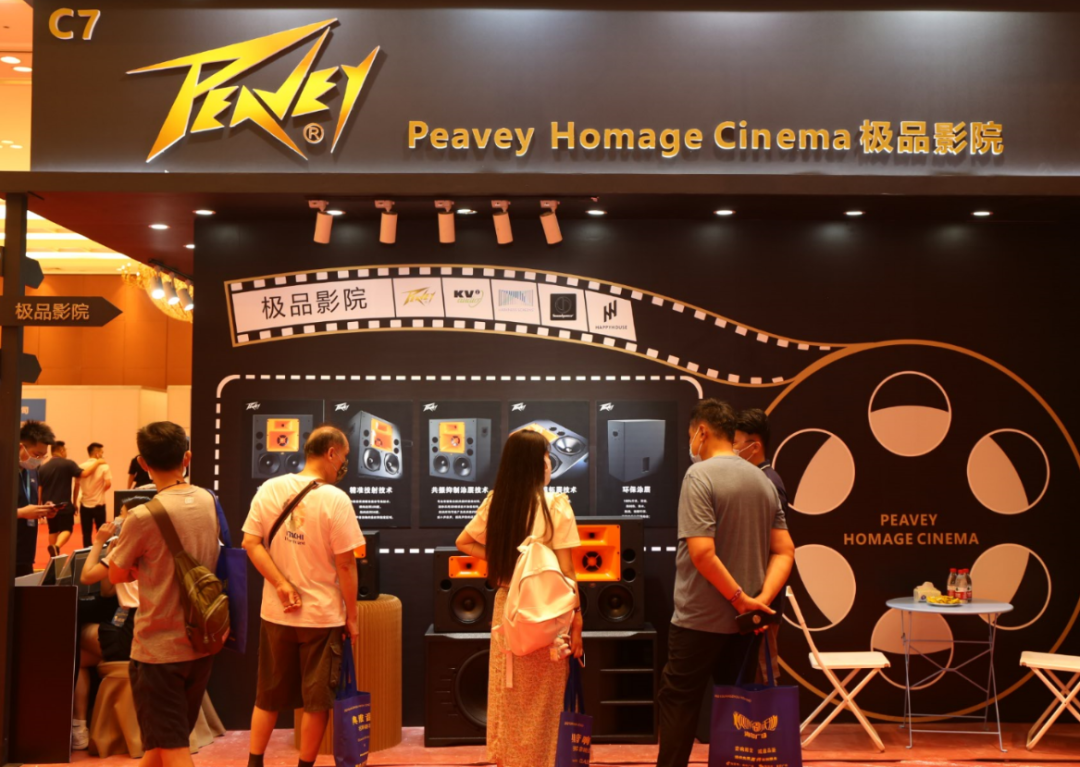 本次展會,PEAVEY極品影院展位設計圍繞着「極品影院」與「PEAVEY發展歷程」為主題,大氣沉穩的外觀一下子就能吸引途徑觀眾的目光。