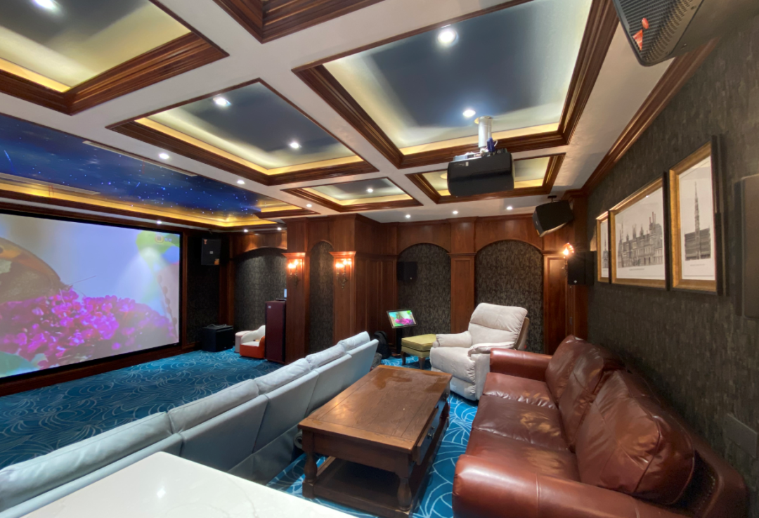 該項目位於株洲攸縣米水二橋南,周邊環境優雅,居住體驗好,內部修建了一個中大型私人影音室。業主是一位比較成功的商業人士,也是一位忠實的電影愛好者,繁忙的工作之餘,更崇尚與家人相聚一起,看看電影,或者跟愛人享受唱唱歌的「慢生活」。對新家地下影音室的裝修設計業主以簡潔實用為主,不喜歡過於繁瑣,但重視聲學吸音隔音設計。而在設備上,業主選擇THX Ultra2認證的原裝進口Klipsch(傑士)品牌,實現杜比全景聲,真正的能夠達到院線VIP廳的觀影效果。