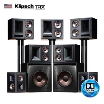在超低音方面,使用了2隻KlipschTHX-1200-SW超低音,並一同置於前置聲道的位置。這款超低音是低頻最強勁的一款,則為12英寸單元超低音,長衝程Cerametallic™驅動前置倒相孔最好的內部鏈接線為了在大房間內達到強烈,渾厚的低音輸出。低音單元可以由外部1000W功率推動,量身定製的它最大的輸出和可靠的低失真。低音炮的箱體採用了護牆板和槽口的設計,這個常用於Klipsch專業揚聲器的結構性完整。