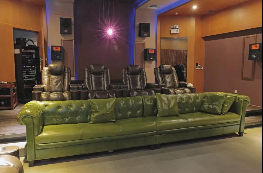 我们受哈比豪斯的邀请前往位于他们公司内部的影院体验馆,体验馆以全私人影院的模式打造,当中影院前置扬声器使用了3只旗舰H8000,而两侧环绕和后环绕则分别使用了H6000,超低音方面则使用了2只18英寸的H18S,放置于屏幕下方。现场我观看了三个影片片段作为体验,包括Adele现场演唱会、《第一滴血4》和《让子弹飞》。