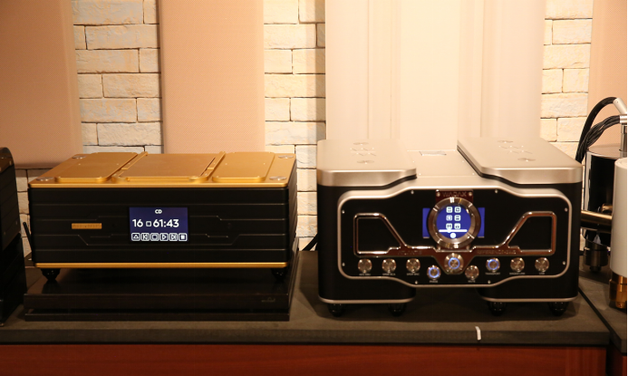 御品音响中环Showroom演示的Divin Marquis为白色箱体,AMT气动高音和单元导波器均为金色,外观非常夺目。为了让Divin Marquis有着更为出色的高频表现,搭配“气刃”180°扩散高音。现场音源用到西班牙Wadax Atlantis转盘和Atlantis Reference DAC解码器。除了数字讯源外,现场还通过黑胶讯源进行接入,便于聆赏黑胶唱片。驱动Divin Marquis是Engström Sound Eric Signature电子管单声道后级放大器,前级放大器则为出自Kazutoshi Yamada之手的Zanden Audio“宙光”。