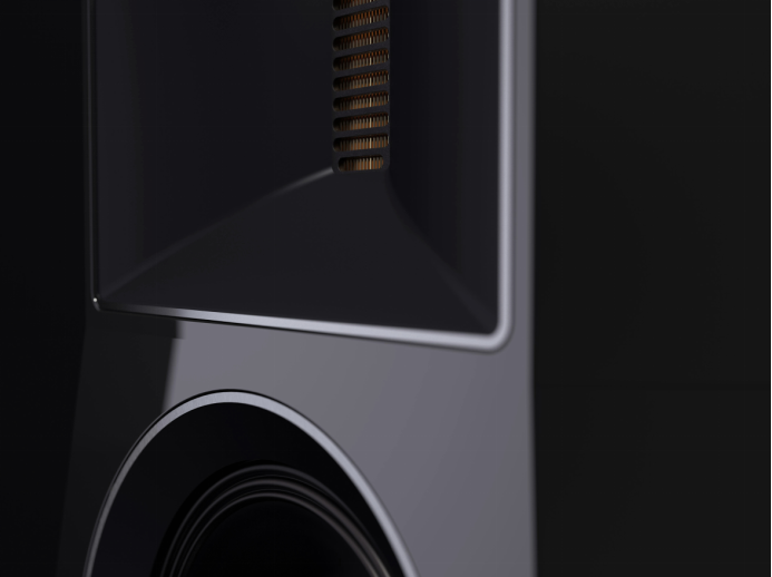而中音单元为8英寸制品,采用了镀铜铝质音圈,围绕着一只玻璃纤维线圈架进行绕组,同时由钕磁体进行驱动。这只中音单元是整个Divin系列扬声器的关键核心驱动器,它基于Göbel High End的弯曲波技术经验进行开发和强化,以实现对谐振更好的控制。而且单元的制造上,它采用了具有特殊的锥盆几何形状和防尘帽、特殊的悬边、特殊的振膜/悬边/盆架涂层和特殊的粘胶材料打造而成。锥盆材料是由纸浆和防弹布纤维混合制成,锥盆的正反两面均采用了多重表面处理。此外,中音单元锥盆的悬边带有多重波浪形皱褶,而不是常见的半圆形截面橡胶悬边。如果你认真细看你也会发现中音单元是内嵌了一些深度,也就是说围绕中音单元也有一个浅浅的导波器,可以将空气谐振降到最低。