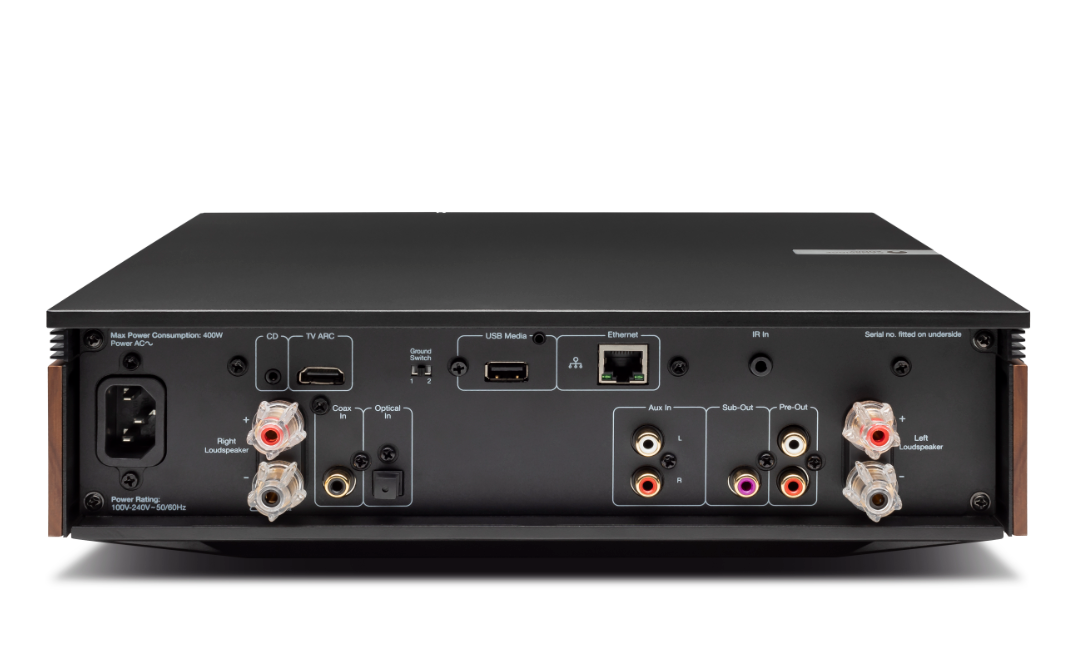 EVO75机身背部拥有丰富的数字和模拟连接,因此用家可以添加任何讯源,从现有的转盘或CD播放器,到使用EVO 75作为电视音响系统。除了光纤、同轴和RCA输入以外,还有一个电视电弧输入,用于使用HDMI线连接电视。机身前部有一个3.5mm的耳机插孔可以让我们连接最喜爱的耳机,并随时收听音乐。还可以使用EVO的内置aptX HD高清蓝牙连接您的无线黑胶唱盘和真无线耳机,让用家只需一台EVO 75即可享受高清串流音乐。