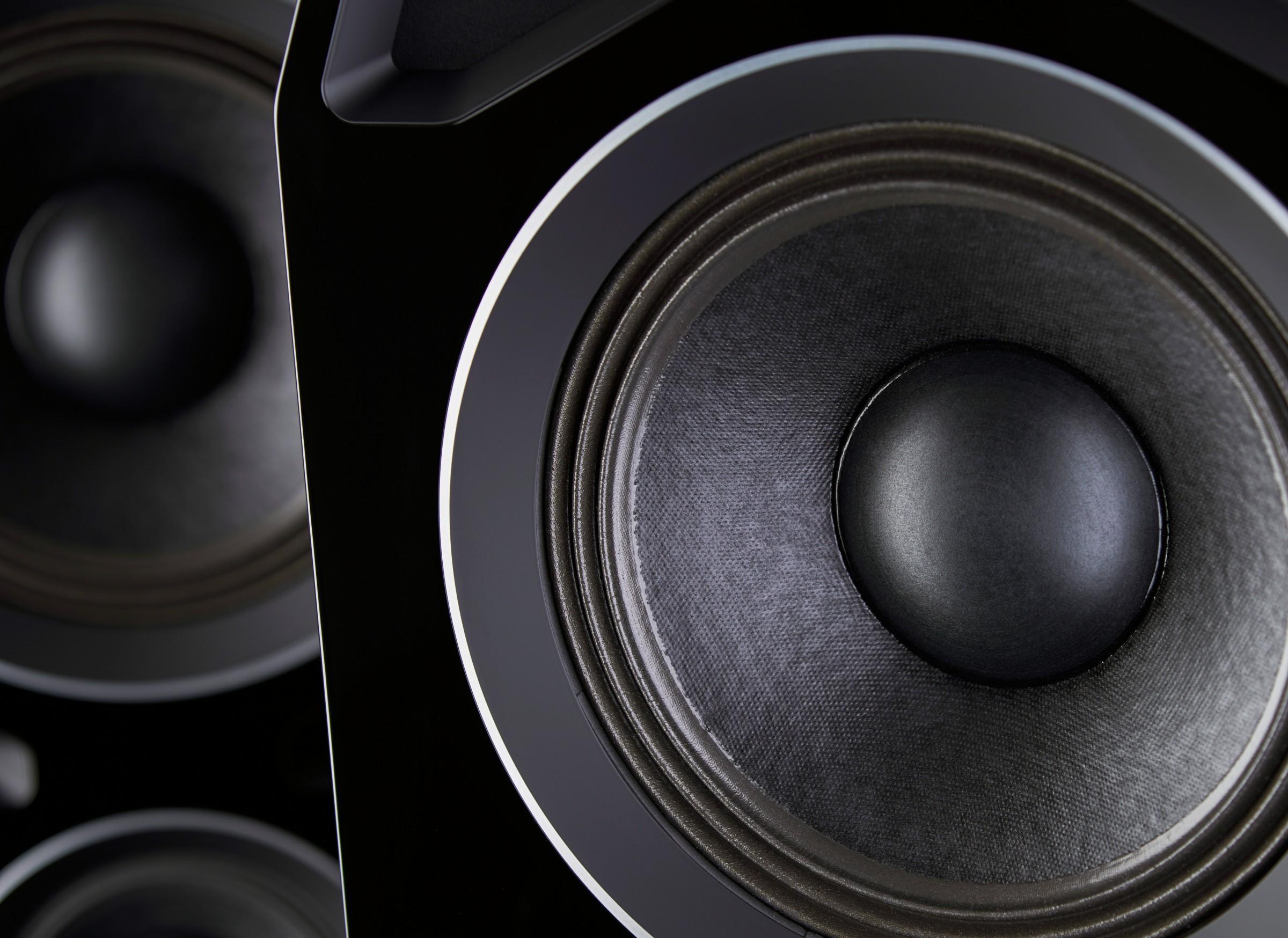 驱动器的设计则是另一个厂家关注每个细节的典范,每只驱动器都经过精心优化,以将热压缩降至最低,将机械稳定性提升至最高,同时消除输出失真(特别是在单元的带通范围之外)。直径12英寸的低音单元和直径8英寸的中音单元采用了外形特别巨大并且大量开孔的音圈,搭配采用纤维增强的纸浆锥盆,形成了实现高效率必须的既轻又坚固的振膜。对弯曲波驱动器的体验则是来自于驱动器的外形、锥盆表面采用的涂层、盆架以及定制的悬边,各种因素对每只驱动器的输出和频宽进行精心地调校。减少频宽外的输出,已经在一些来自Wilson、Focal、Wilson Benesch、Vienna Acoustics等品牌的成熟设计中被证明是非常有好处的。