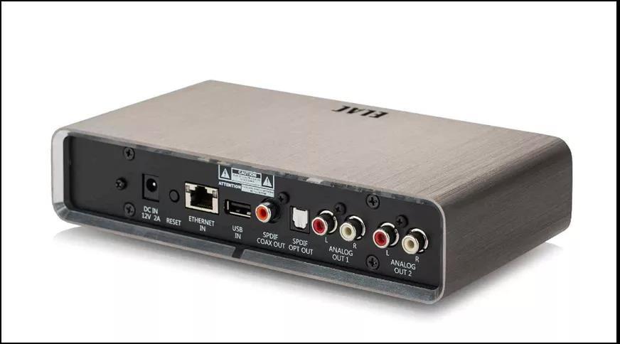 当然,流媒体的玩法不只属于以BluOS系统的产品,而其中来自德国的ELAC音响厂家,在中国大家都十分熟悉ELAC出品知名的扬声器,但在德国本土,ELAC知名的产品显然更加广泛,包括丰富的播放器、放大器以及一体化桌面蓝牙扬声器。例如早前我们曾经介绍过的DS-S101-G音乐服务器,DS-S101-G的运作很简单,其内部不具备存储硬盘,但可以通过背面的网络接口(与局域网中网络存储服务器NAS)以及USB Type A(连接本地的硬盘底座)对外置存储载体进行访问和读取。而输出接口具备数字和模拟,玩家可以通过同轴(24bit/192kHz)和光纤(24bit/96kHz)输出的数字讯号接入到阁下已有的高级DAC解码设备上。而两组模拟RCA输出则便于用户直接接入到前级和合并式放大器上(解码环节也省了)。在串流和流媒体方面,DS-S101-G内建了Roon Core架构,可以直接作为讯源实现丰富的数字音乐码流输出。