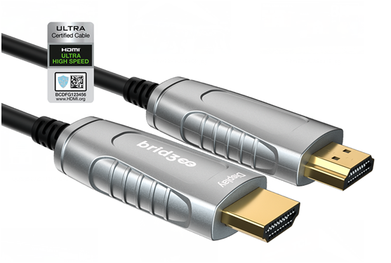 在中國影音渠道圈中資深HDMI線材資深品牌-祈翱bridgee在本次CES2022所亮相了全新的PROF-H48型號光纖HDMI,從產品型號命名即可看出它是一條具備滿速率48Gbps傳輸的HDMI 2.1規格線材。而且它還經過了嚴苛的HDMI協會UHS(Ultra High speed )認證。