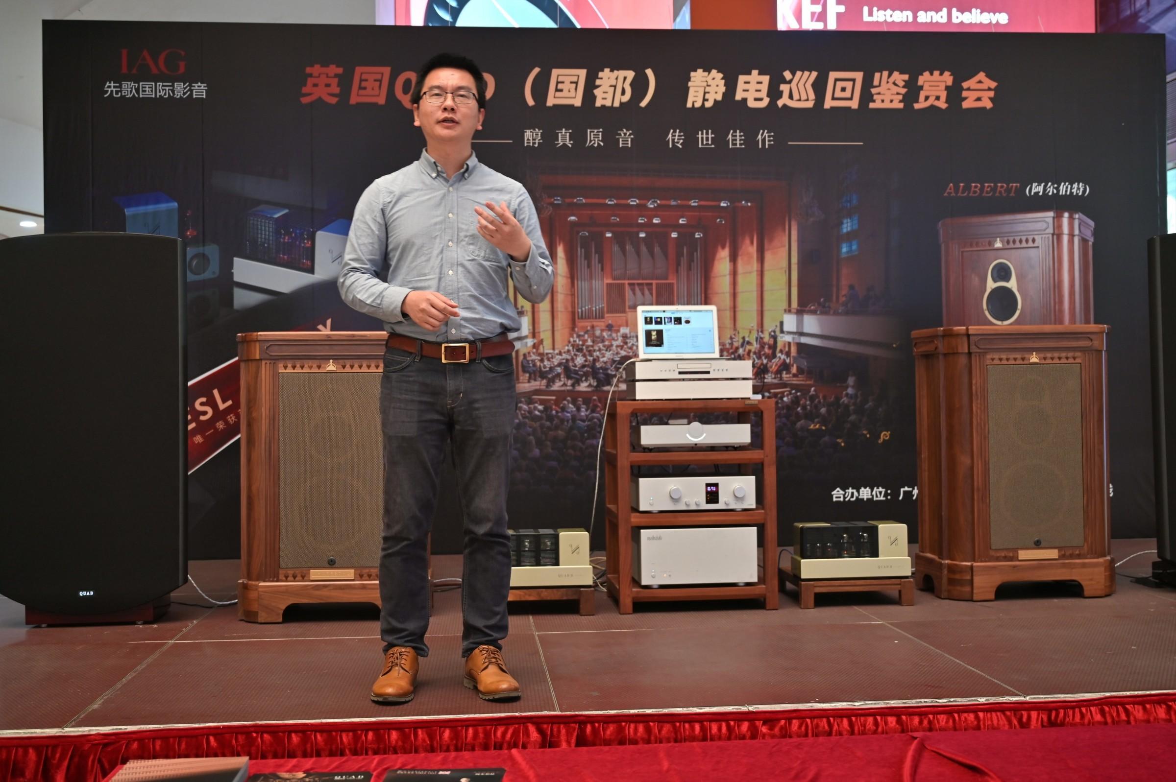 作为拥有8大国际知名音响品牌的先歌国际影音早已蜚声国际,先歌国际影音营销副总伍少勇先生除了为我们介绍了公司的品牌,更为我们分享了国都的发展历史,创立时间已经快接近90年的英国国都,堪称英国声的代表,既是静电音箱的元老,也是设计研发高端放大器的实力厂家,早在50年代,就极具革命性举办现场演奏与静电音箱重播做对比的音乐会,足见对音箱高保真品质有着超强的自信。