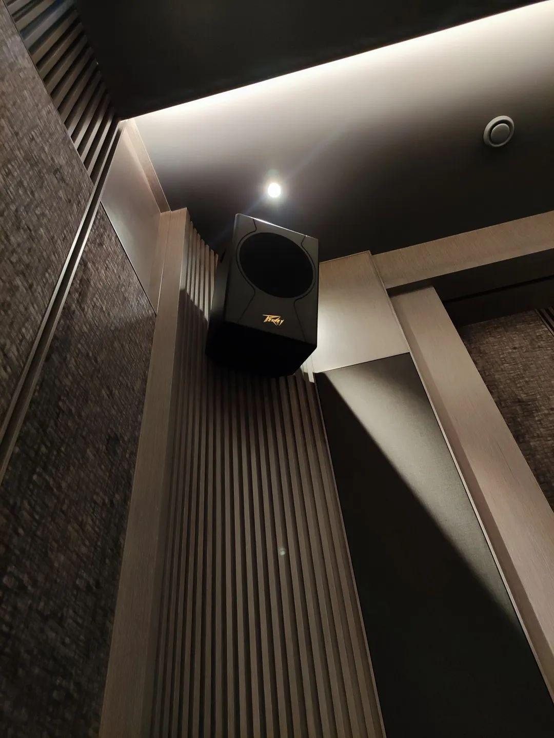 為此,業主多次前往不同的體驗館,但是效果都未達到心中所想。就在一籌莫展之際,業主所在小區有許多有私人KTV搭建經驗的朋友向業主推介了來自美國的音響品牌PEAVEY百威。PEAVEY來自美國,品牌強烈的品牌音樂文化以及同軸出色細膩的音質深深打動了業主,其效果讓業主為之一振,人聲還原度高。雖然高於預算,但在體驗了PEAVEY後,最終還是選擇提高預算,選擇了PEAVEY MD同軸系列作為音響系統的主角。