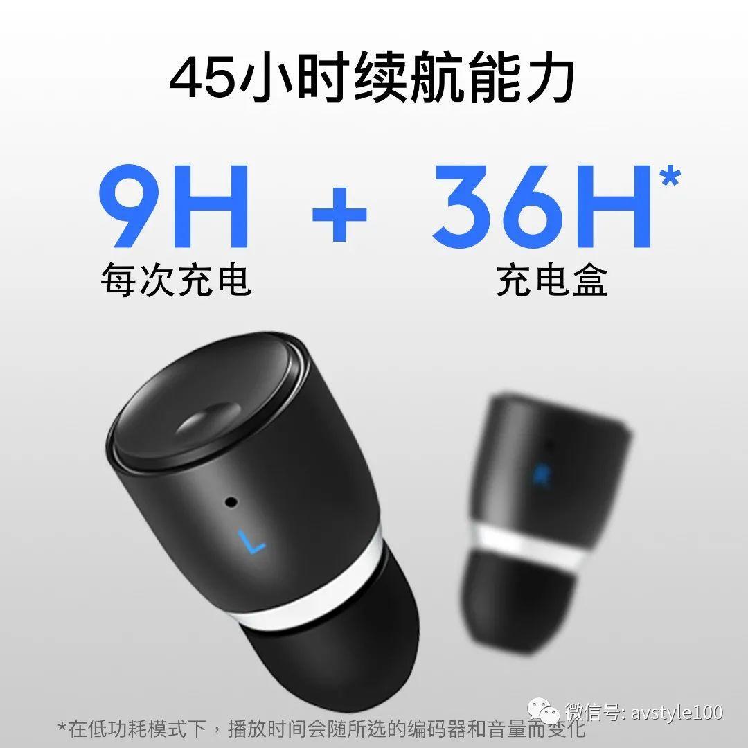 耳機單次充電後提供長達9小時的播放時間,充電盒則可額外為耳機充電四次。這意味着電池總續航力為45小時,不過這需要使用低功耗模式才能實現。如果在默認的高性能模式下使用耳機,耳機本身將提供7小時的續航力,加上充電盒的總續航力則縮短為35小時。