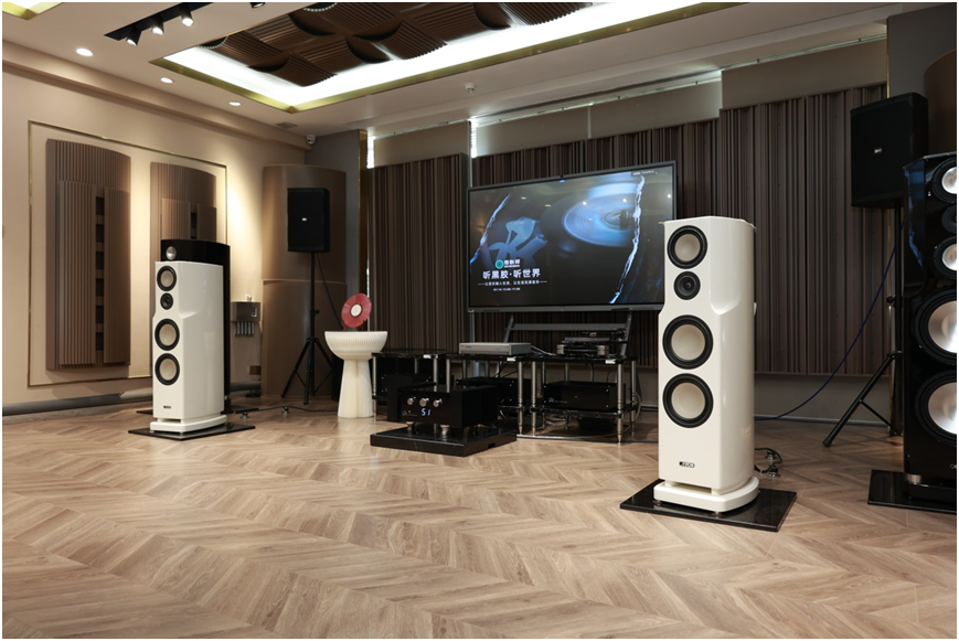 整套音响系统采用了一对Canton Reference 3K旗舰座地式扬声器、ASR Emitter II exclusive HiFi放大器、Whest Audio TITAN Pro唱头放大器以及Origin Live Sovereign黑胶唱盘。