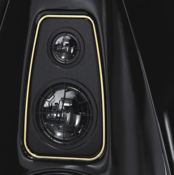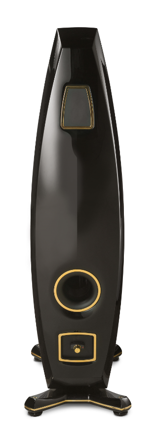 箱体的用料和设计方面,EnigmaVeyron EV-4D座地式扬声器也画下了浓墨重彩的一笔。与同系列EV-1D、EV-2D那种上下宽大、中间收窄的“哑铃式”箱体有所不同,EV-4D的箱体采用了较为传统和常规的上小下大的外形,略略后仰,整体显得在稳重中又增加了轻灵之感。同时,EV-4D的箱体更像是一只梭形,因此可以有效地抑制箱体的低频驻波,保证声音的清晰干净。前障板被精心处理成5个不同形状的弧形表面,除了美观之外,也有可以有效地避免杂乱声波的反射和衍射,保证声音的准确度。