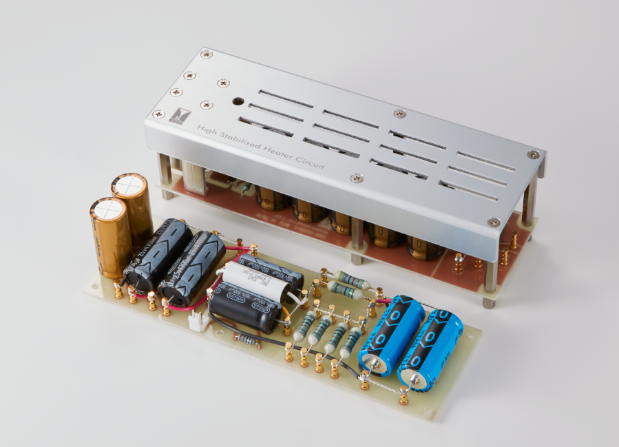 在对于电子管放大器尤为关键的电源供应部分,M7 Heritage电子管前级放大器采用了一只6CA4(或EZ81)电子管作整流调谐。电源变压器和电源扼流圈经过特殊匹配设计,以将自身的振动降至最低。在电容方面特别下功夫,采用了3种不同的去耦电容以平衡不同的音调特性,实现更准确的声音;通过严格区分纹波过滤电容和去耦电容,进一步强化电源供电能力。此外,将电容组与全新开发的分流式电子管灯丝直流供电电路相结合,消除了供电电路上的波纹,可以将电子管的灯丝电压控制在±5%以内。
