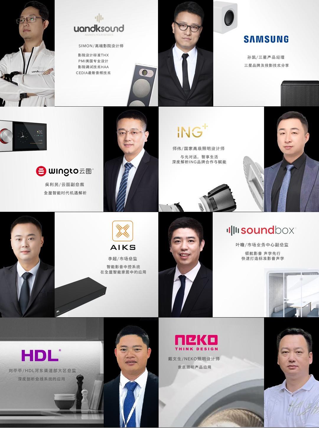 “影声智汇”主要由uandksound(英国之声)影院设计、灯光设计NEKO(耐科)、华艺ING、智能家居HDL(河东)、wingto(云图)、视频显示三星、影音控制AIKS(埃克思)、声学设计soundbox(声博士),各领域知名品牌以及专业团队讲师,给大家带来专业的灯光照明设计、无线智能和有线智能的知识和未来的机遇,影院以及声学设计,通过这个培训获取全面以及系统的专业知识。