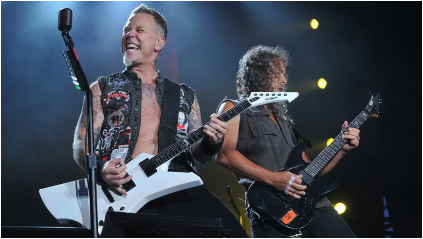 前面说到,不同年代背景衍生出不同的摇滚风格,欧美金属摇滚的鼎盛时期在二十世纪七十年代后期。从Metallica乐队开始,复杂的编曲和大量华丽的吉他独奏都是金属摇滚的鲜明特征,演唱风格上极富冲击力,这也使Metallica乐队长期处于金属摇滚的统治地位。他们那种硬派风格的感觉非常起到宣泄的效果,这种重量感似乎把人体身上的压力都用这种宣泄方式发泄出来了,有着冷酷和刚硬气息的音乐,总给人一种很特别的感觉。