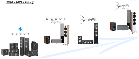 如果說德國ELAC(意力)是音箱中的性能代表,那麼ELAC新晉的Uni-Fi Reference系列就是性能中的「尖子」了,該系列以ELAC Debut系列為基礎(Debut Reference系列的推出更是在Debut基礎系列上進行升級)。而Uni-Fi Reference系列的開發同樣延續了Debut系列的傳統和策略。因此從下圖產品線的演進可以看到,Uni-Fi Reference系列集合了ELAC在聲學技術上的積累,同時也是Debut Reference和UniFi 2.0系列在簡約外形上的延續。
