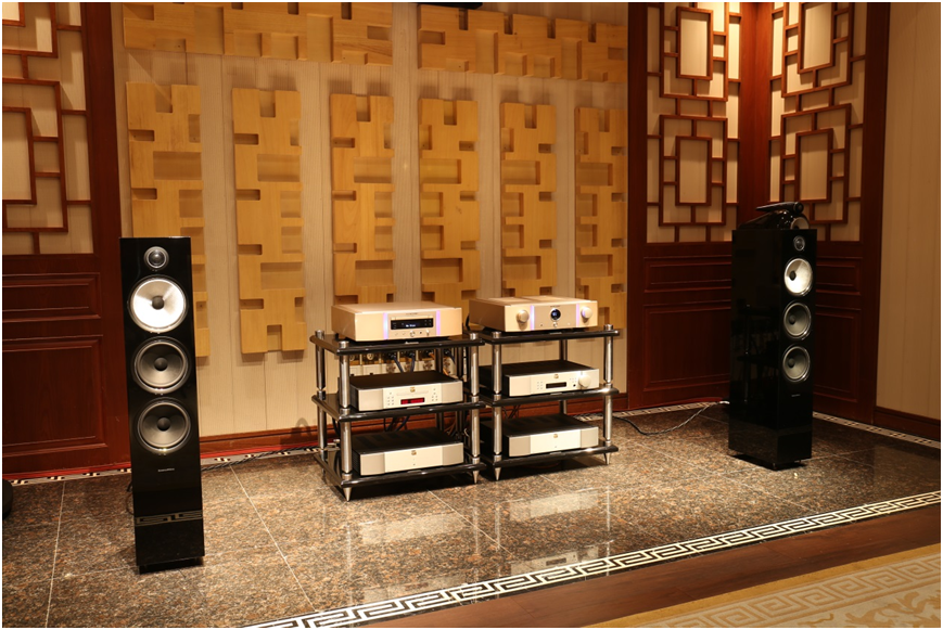 這次試聽,筆者採用了Marantz KI Ruby HiFi紅寶石套裝與寶華韋健703 S2搭配,這稱得上是一組經典音響組合。703 S2採用3路透氣式系統,並沿襲了旗艦800 Series Diamond系列精華技術的Aerofoil振膜低音單元。高音部分去掉了702 S2頂置的碳膜半球型狀的1英寸高音單元——Carbon Dome™,該高音單元是一項專為700系列研發的技術,通過顯著改進鋁製雙球頂高音單元,將崩裂值提升至47kHz,呈現身臨其境般的音樂精度與細節。6英寸中音單元部分,則運用了退耦設計,能大大降低箱體的音染髮生。另外,關於中音單元,在振膜方面採用了Continuum™(鋼聽能)單元,擁有比凱夫拉更好的聲學特性,特別是其編製塗層物料可以嚴格控制崩裂,使得中頻變得更加開闊與自然。在結構方面,中音單元並不是固定在前面板上,而是靠一根連桿與背板連接,對降低單元自身振動引發的箱體音染有着很好的效果。Aerofoil™形振膜6.5英寸低音單元則通過先進的電腦建模技術開發而成,Aerofoil™形振膜低音單元擁有超凡的剛性與硬度,傳遞深厚而動感的低音。