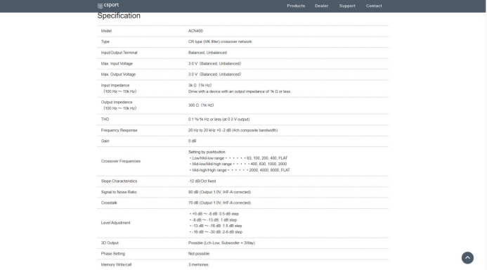 据了解,日本精品级模拟品牌CSPort(大师)推出了ACN400主动式模拟分频器,其能将声音信号精确地分割为低频、中低、中高频和高频,并输出到各频段对应的后级功放等。此分频器除可配置高达4路外,亦可设定配置为2路、3路以及3路+3D。ACN400中最新的MK Filter滤波分频线路是厂方最新研发的成果,除能够达致完美分频器的理想数值“transfer function gain G=1”外,更能在-12dB/oct的情况下达到相位同步的效果,让用户在调校多功放系统时更加得心应手。