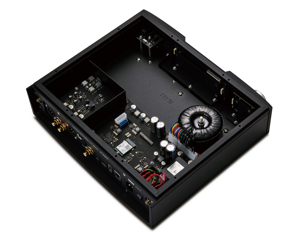 ALTAIR G1.1使用Purer-Power線性電源通過其電源凈化模塊可將直流電流噪聲降低多達90dB。使用經過特別設計的變壓器和獨特的接線可以大大減少振動,Purer-Power的噪聲在整個可聽頻譜範圍內都保持在1μV以下,從而使您可以發現音樂中的細節,直至最後一個音符。其中,上述的USB供電也取自Purer-Power線性電源,從而繞開USB自身的供電,這意味着不純凈的USB電源以及隨之而來的EMI噪聲將儘可能被隔離,遠離音樂,從而獲得最純凈的聲音效果。