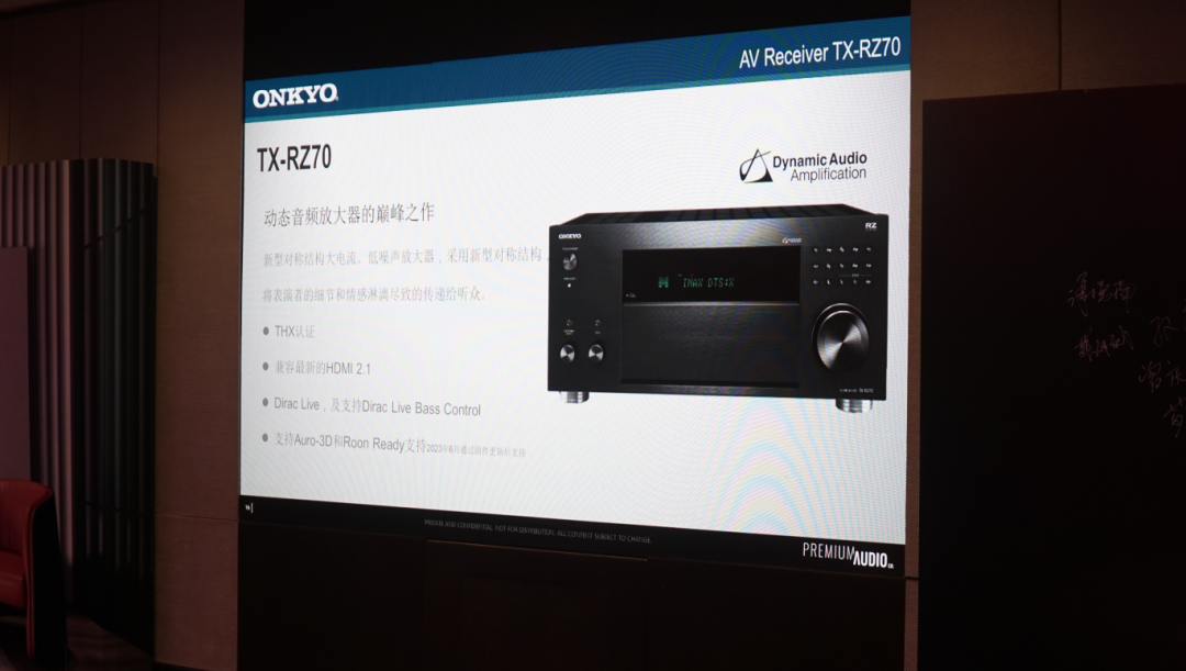 而針對安橋推出全新的TX-RZ70影音接收機,則由PAC亞太區代表陳元峰先生主持。據他介紹,此款產品是動態音頻放大器的巔峰之作,採用新型對稱結構大電流設計的低噪聲放大器,具備THX認證,兼容最新的HDMI 2.1規格,內置Dirac Live聲學校正系統以及Dirac Live低管功能,本年6月份也將會推出全新固件支持Auro-3D和Roon Ready。而兩聲道產品線在本年也會進行升級。