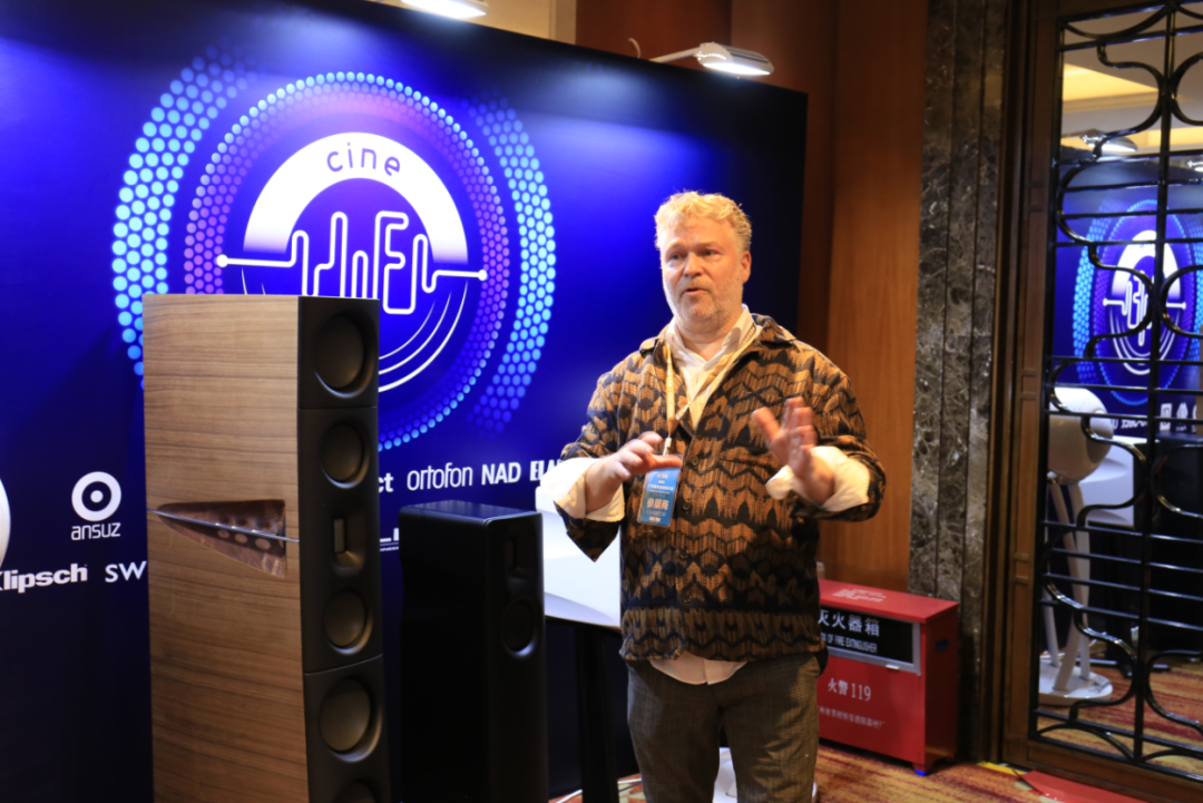 随后,Michael Børresen先生致辞。对于这位大咖,作为音响爱好者的我们绝不陌生,他是丹麦Audio Group Denmark的创始人,旗下的Børresen音箱品牌、Aavik功放品牌和Ansuz发烧线材品牌均出自他手。年轻时的Michael 就有强烈的创造和重新设计事物的愿望,在这种情况下,他的爱好一直是分析单个音频组件并寻求显著改进它们的方法。他先后建立起Aavik、Ansuz、Børresen三个不同类别的音箱品牌,在2020 年底,Audio Group Denmark 作为这三个品牌的母公司成立。Michael现场向我们介绍Børresen的音箱,自家全新设计的铝带高音是其中一大亮点,其振膜质量仅有0.01公克,比头发还要轻质,以薄如蝉翼的质量,满足高频快速振动的需求,固定铝带振膜的方法采用高温定型,提升牢固性,也提升铝带高音的工作动态。Børresen音箱另一个亮点在于Cryo冷冻技术,这个技术就是在制造过程中,将分频器、内部接线等部分的金属部件进行超低温处理,温度低至-315华氏度(-192摄氏度)。这种方式常见于Hi-End线材,同时拥有Ansuz品牌的Michael 自然是深得其精髓。