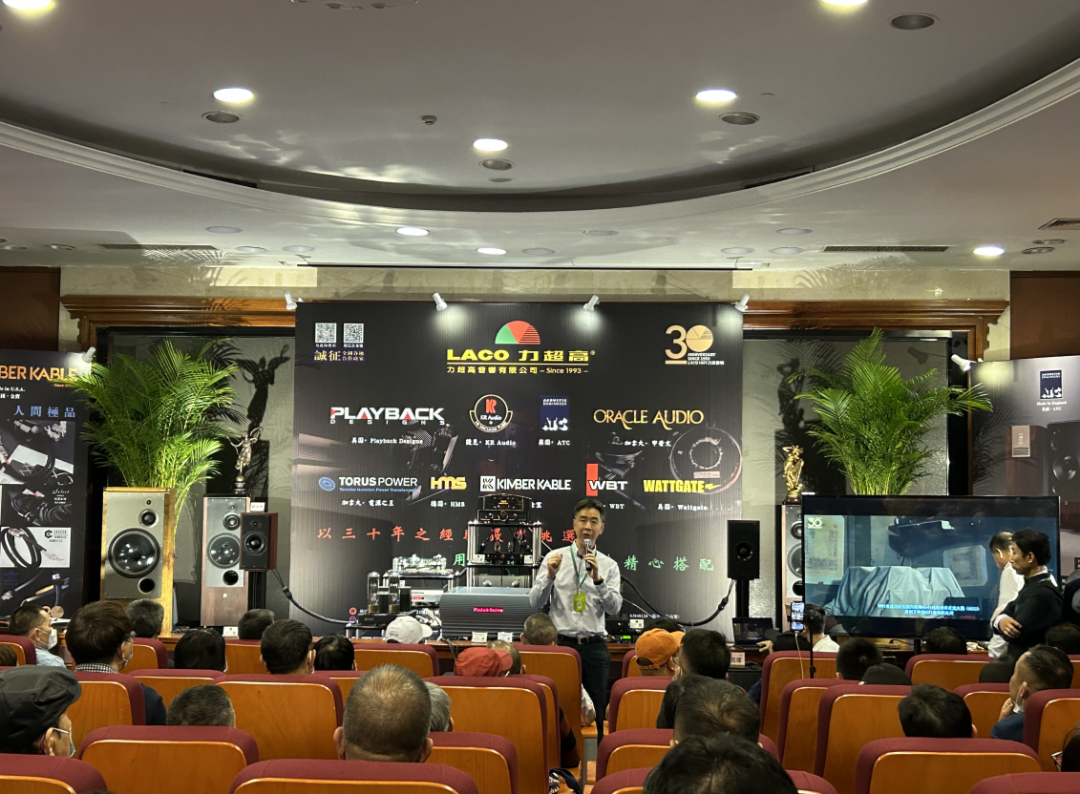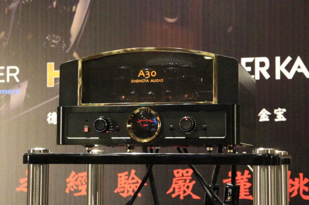 现场据声雅何总介绍,声雅A30是一款无输出变压器的电子管合并机,前级放大部分采用ECC83电子管作初级放大,6N11电子管作次级电压放大,KT88电子管作末级放大,因此A30具备传统胆机优美的音色表现。A30最大的特色是没有采用输出变压器,而是使用半导体晶体管取代传统输出变压器,能够消除传统输出变压器所带来的各种附加失真,使频响范围拓展至10Hz-60KHz(+1dB)内,输出功率可达200W每声道。
