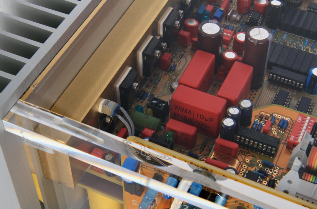 主機內部線路採用Class A/B設計,PCB電路板採用高質量材料製成,厚度達到2.5mm,並升級為比以往版本厚1倍的鍍金銅箔。內部使用12個有着極高脈衝電阻的特殊Mosfet音頻功率晶體管,並安裝在兩側的實芯黃銅上,實芯黃銅與外置的散熱鰭片進行緊合連接,實現熱量傳遞。音量部分採用步進式繼電器來切換增益(阻尼小轉動非常絲滑,並帶有精密步進的「噠噠噠」聲音),不管音量大小阻抗都不會變,聲音訊號只通過兩個焊點,能大幅提升音質的純度,每一級增量為1dB,帶平衡和電平補償。