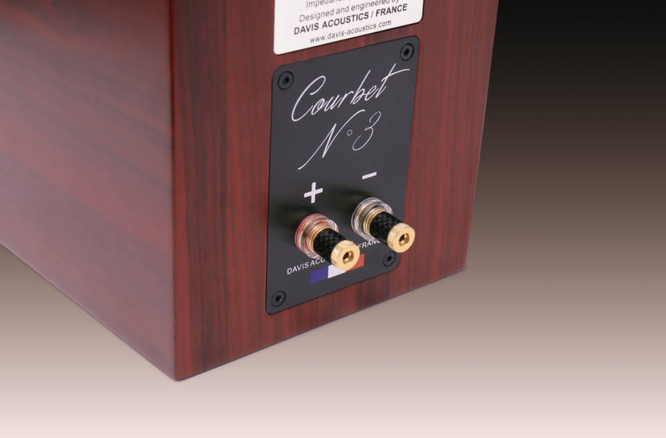 「法國製造」是Davis Acoustics的其中一個特色,廠方能完美控制所有不同的生產步驟。在音響的製造過程中,所有的部件都很重要,通過改變音圈的質量,就會改變聲音,所以如果不做好每一步就無法改善聲音。本次試聽的這對Courbet N°3書架式音箱屬於Courbet系列,該系列以現代化設計,以Kevlar、Carbone振膜搭配低失真高音單元,造型簡約低調,而聲場寬廣。