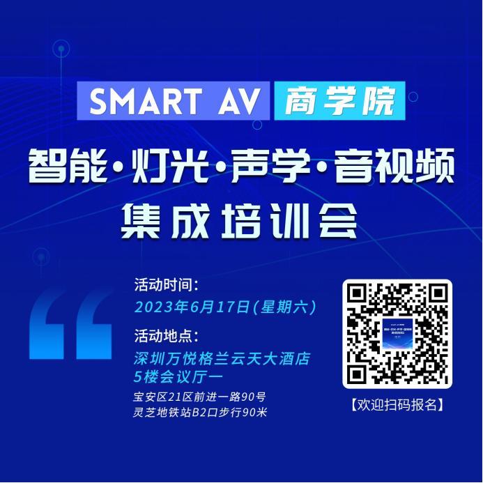 Smart AV商学院—智能·灯光·建筑声学·音视频集成培训会将于2023年6月17日在深圳举办。会议将凝聚学术界、商界等各方力量,围绕企业人才在面对专业技术上的痛点、难点以及学习和智能、灯光、声学、音视频一站式系统解决方案展开培训。