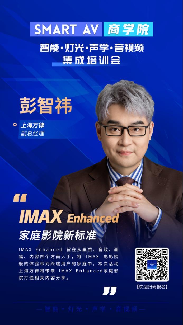 IMAX Enhanced是IMAX的家庭影院解决方案。IMAX Enhanced 旨在从画质、音效、画幅、内容四个方面入手,将 IMAX 电影院般的体验带到终端用户的家庭中,本次活动上海万律副总经理彭智祎先生将带来IMAX Enhanced家庭影院打造相关内容分享。