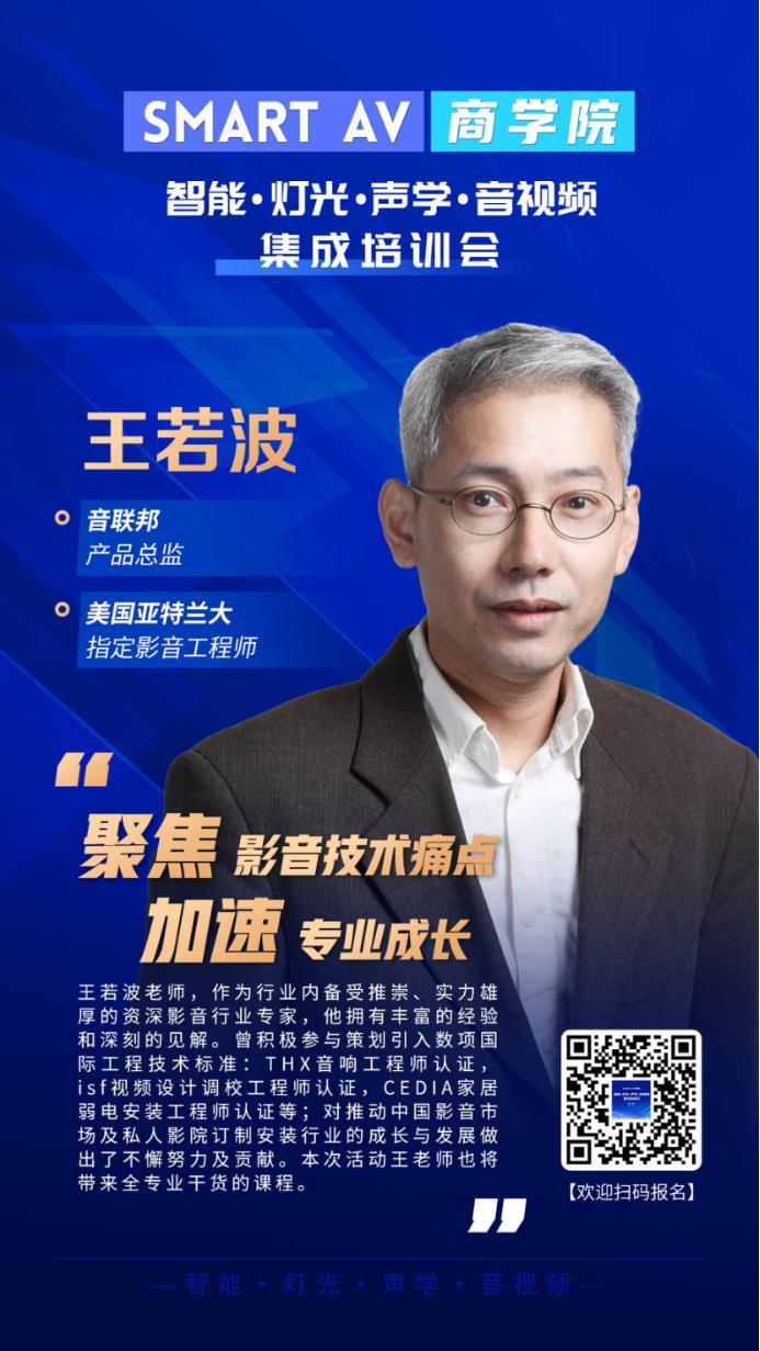 王若波老师作为行业内备受推崇、实力雄厚的资深影音行业专家,他拥有行业内丰富的经验和深刻的见解。曾积极参与策划引入数项国际工程技术标准:THX音响工程师认证,isf视频设计调校工程师认证,CEDIA家居弱电安装工程师认证等;对推动中国影音市场及私人影院订制安装行业的成长与发展做出了不懈努力及贡献。本次活动王老师也将带来全专业干货的课程。