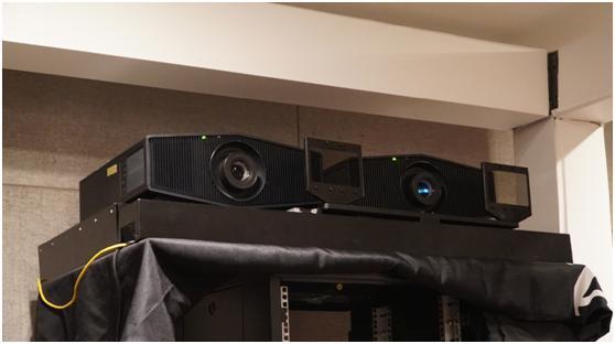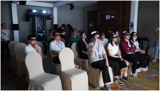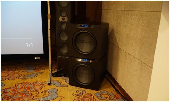 正值中午用餐和休息之际,SMART AV商学院在楼下搭建了小型THX & 全景声 & 3D IMAX影院演示厅,用于本次活动所有来宾前来体验和感受。现场使用了Atlantic(亚特兰大)的影院音箱、SVS低音炮。而器材设备方面则用到麦尼塔UDP900和EMOTIVA全套前后级环绕处理器和后级放大器。投影机为双SONY激光投影机带偏振镜。通过多段3D演示片段,为朋友们带来震撼的视觉和听觉体验。