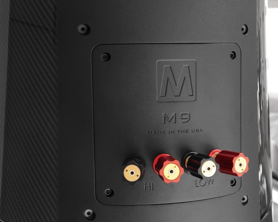 這對定位旗艦的Magico M9座地式音箱,突破了傳統音箱規範的特點,打造無極限全新的設計,為高保真音樂的再生樹立全新的參考指標。M9採用四音路六單元座地式設計,具備全球首創的革命性聲箱結構,巧妙地將兩層碳纖維鋪設在蜂巢狀鋁合金骨架Aluminum Honeycomb Core的表面,將不必要共振鎖定在單元工作頻率以外水平。與此同時,M9也是Magico首對將蜂巢狀鋁合金骨架同時融入Nano-Tec三明治錐盆單元的音箱產品,配合度身訂製、專門針對低音和中/低音單元之間銜接而設的MXO主動式模擬分音器,這意味着M9將會在任何聆聽環境內,全面展示勢如破竹,不受束縛的強悍動態,連帶聲音透明度及對於微動態的展視手法,將會升華至前所未有的新境界。