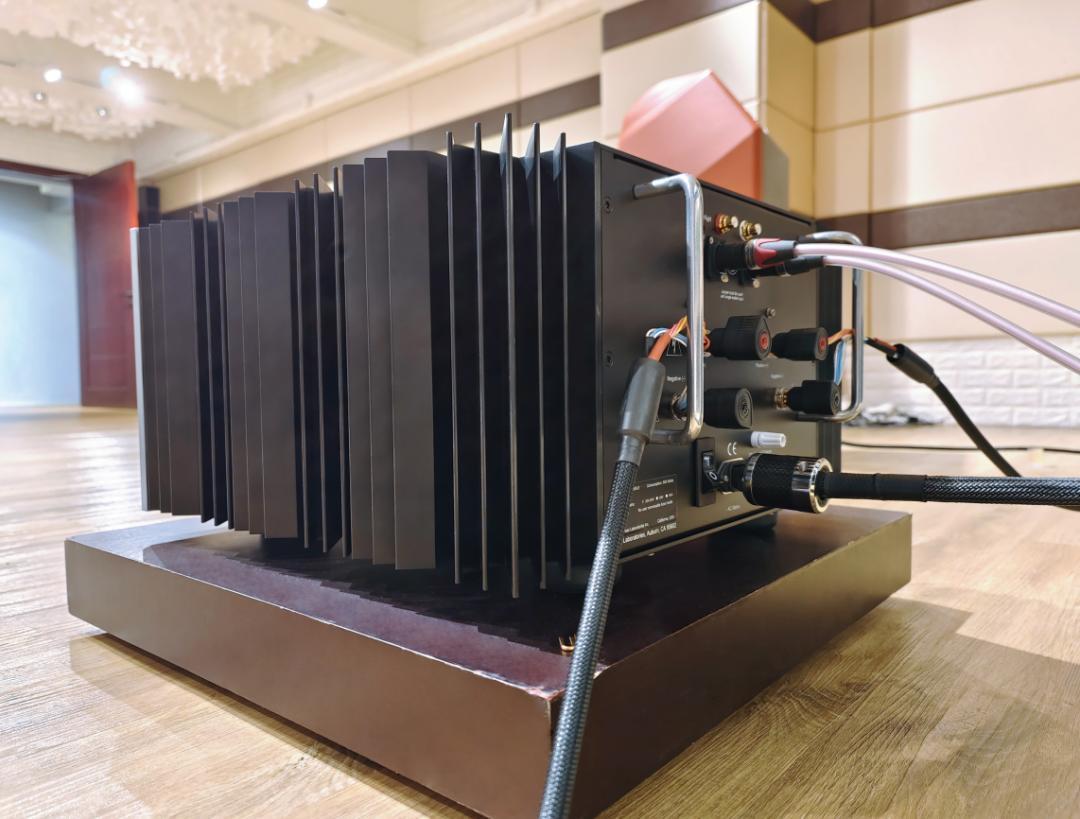试听现场的系统中,采用了Pass Labs XP22前级放大器,以分体式设计。当中分离的电源机箱,内有两个双重屏蔽的超低噪音环形变压器,极低的电磁波和机械振动,加上独立电源箱设置,彻底把电源供应可能带来的对微小讯号的干扰予以排除,因此造就出超低失真和极佳的讯噪比,这样一来,音乐动态和解析力都会提升。从电源开始就讲究,在放大线路上当然也是精心设计。XP22的线路以旗舰前级XS前级为蓝本加以简化。同样采用了Toshiba的电晶体做增益放大,只不过在XS前级上所用的晶体更大、偏压更高而已。在输出级依旧采取单端线路,这是Nelson Pass的坚持:简化的线路,反带来更好的声音表现。内部的端子更用上航太级的镀银无氧铜端子,确保接触面的传导效果始终一流。音量控制则是采用光藕合微处理器控制的音控,这是从更高级的XP30上直接挪用来的。输入接口足够丰富,一共5组输入,包括2组XLR平衡输入,以及3组RCA输入,其中第5组输入可以切成by pass直通路径,方便用家整合于剧院系统。输出方面也有1组平衡、2组单端,使用上非常方便。