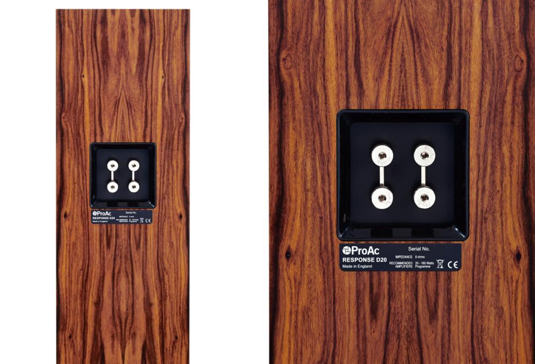 據了解,箱體的內壁同時貼上木皮,配合特殊阻尼物料,能協助化解不必要的諧震干擾。至於開發概念源自同系列D30S及D48的反射式呼吸管道,被安排在聲箱底部,配合別出心裁的腳座結構,成就了D20最低下潛直達28Hz的水平。必須強調的是,D20D和D20R無論怎樣的設計和單元搭配,廠方始終為它堅持着英國本土生產製造,這也成為ProAc一貫的準則。