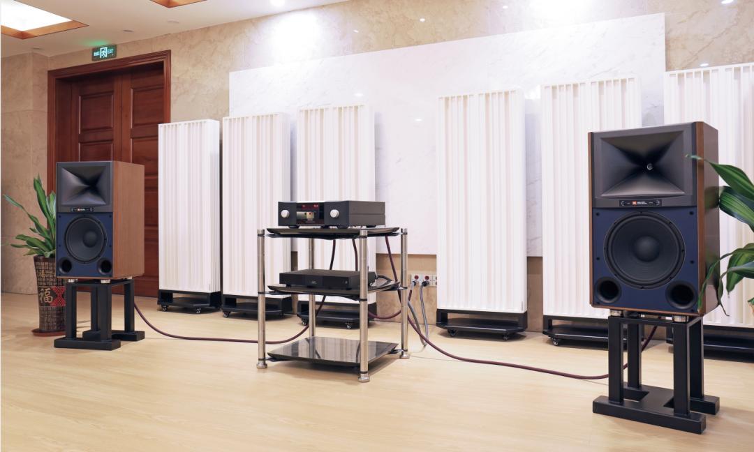 号角音箱历史悠久,即便被称作“古董”,依然无法阻拦它被广大音响爱好者追捧。众所周知,号角音箱的优势在于其高灵敏度,可以挽救小功率功放,同时指向性强,可一定程度地减少反射声。而在外观方面,大多数号角音箱木质箱体的方正设计洋溢着古典的气质,但若你就此认为号角音箱代表刻板则错了。毕竟,古典不等于古老,加入现代化技术的复古风号角音箱,可以俘获不同年龄层的爱好者欢心。最近我在广州域丰音响体验一番,现场以MARK LEVINSON No.5802合并放大器驱动JBL 4349书架式监听音箱,可谓是以经典的造型玩出现代的花活。而对于这次MARK LEVINSON和JBL搭档的系统,我认为不论是资深发烧友还是新生代年轻爱好者,都会赞不绝口。