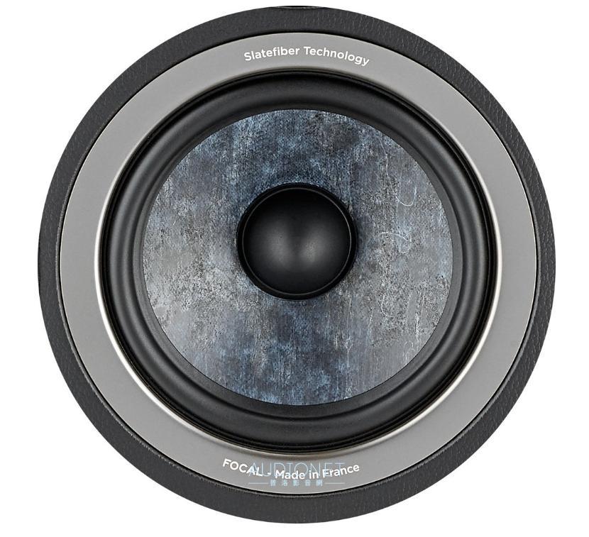 维斯塔女神4号Vestia N4搭载一只6.5寸中音和两只8寸低音,也是系列中唯一一款低音来到8寸的喇叭,低频也更扎实有力。中、低音皆是采用原厂著名的Slatefiber振膜单元,此单元大有来头,是Focal 40周年时所研发的技术,当时首次运用在Chora喇叭系列上。从字面拆开解释,Slate是石板 、Fiber是纤维,此锥盆表面正呈现类似于岩石的纹路,它是由一层回收碳纤维为主体,碳纤维为非编织结构,并由Focal工程师精密控制纤维方向以增加其刚性。前后再各用一层熟塑聚合物( Thermoplastic Polymer ) 压制成三明治结构,使锥盆在刚性、轻量化以及阻尼特性三大振膜核心优势达到最佳的平衡。