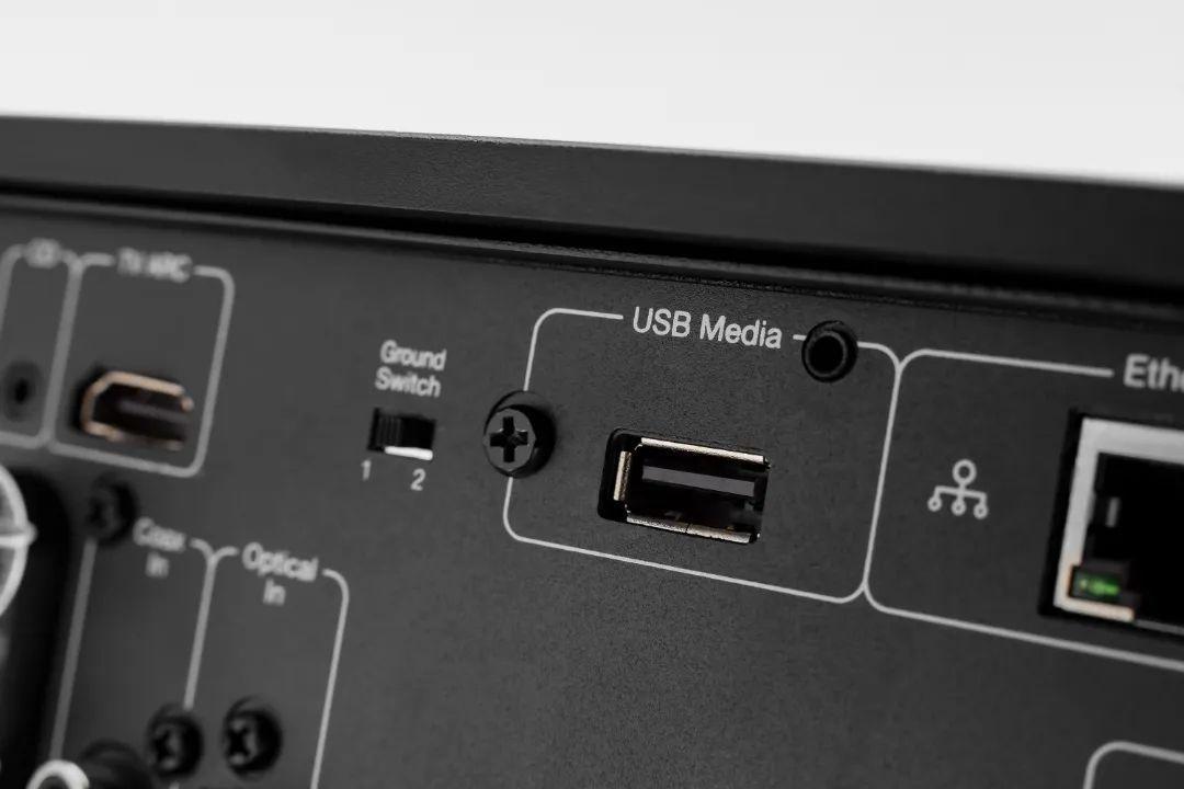 背板可看到RJ45網絡孔、HDMI(ARC)、數字光纖、數字同 軸、USB、RCA,以及MM唱頭放大等各種端子,足以成為家庭影 音娛樂中樞,無論是要聽音樂、看電視,或者是打電玩,都能體驗 到Hi-Fi級的聲音表現。除了前述強大的串流性能,考量到現代人有更多的娛樂需 求,Cambridge Audio還特別為EVO 150配備了1組帶ARC功能的HDMI端口,如此一來用家便能輕鬆將發燒音響系統結合智能電視來使用。而連接訊源、喇叭的方式EVO 150也能提供你極為多元的選擇,除了具備數位光纖、數字同軸輸入、模擬RCA入,也具有MM黑膠唱頭放大,想當成黑膠系統的一環也完全不是問題。輸出方面,EVO 150它的喇叭輸出也有A、B兩組,透過此設計用家能輕鬆建構兩套Hi-Fi系統。另外還有前級輸出、3.5mm耳機輸出,甚至還有超低音輸出,可以為音響外接超低音,不管你是要聽音樂還是看電影,喇叭都能更靈活地規劃。