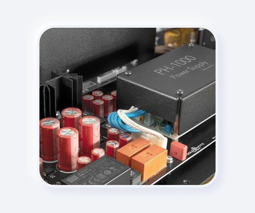 PH-1000使用A級的分立元件,A級耳機輸出電路,預設超過40 種的EQ均衡曲線,另外還有4種手動調節的個人定製EQ曲線可供選擇,並且有高品質的前置放大線路板可供選擇。