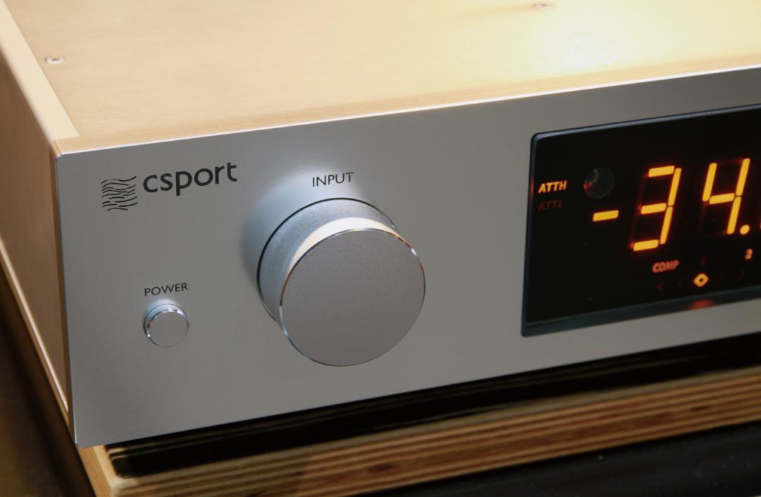 由於「下游」的音箱為內置功放的有源音箱,因此只需要搭配一款優質的模擬前級放大器即可,顯然現場搭配的C3PR就是最不錯的選擇。C3PR模擬前級放大器屬於電子管前級,配備德國電信開發的高可靠性C3g封裝電子管,為了擁有最佳的使用穩定性,C3g電子管直接焊接於電路板上,同時可以減少觸點的訊噪。另外,C3PR擁有優異的電源供應技術,廠家特意為其設計專用的變壓器(輸入和輸出均使用專用變壓器),由於變壓器是影響失真度、信噪比、輸入輸出阻抗等性能的重要部件,CSPort以非常優質的用料設計該變壓器,當中包括鐵芯材料、線材、繞線厚度、繞線比等,均經過廠家精心設計和製造,從而擁有極為優異的指標,例如擁有極低的雜音和低噪。