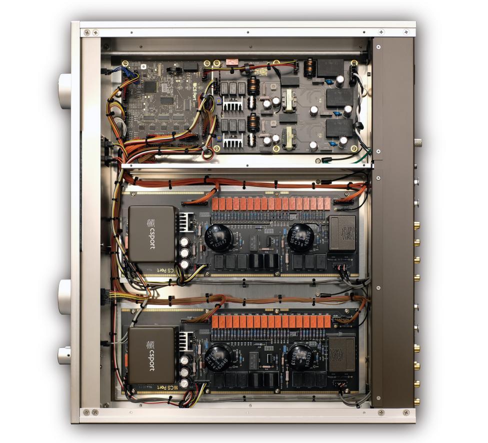 C3PR放大器採用單端無反饋兩級配置設計。儘管內部線路並沒有採用對稱式布局,但CSPort一共使用了兩份獨立的變壓器電源,專為左右聲道進行獨立供電,從而達到最不妥協的效果。據CSPort介紹,C3PR採用廠家特有的開關電源獲得穩定電壓後,再通過線性電源供電,從而獲得兩者技術優勢。