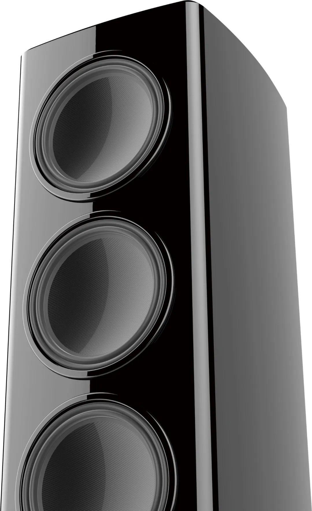 PS2K有源低音炮为黑色高光外观、碳纤维饰面以及铝制底座打造,并配有硬地板滑脚和脚钉。
