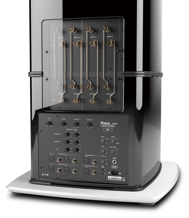 该低音炮外型跟我们所认识的“方方正正”的低音炮非常不同,PS2K采用“塔式”设计,如同一只座地式的音箱,但事实上,它使用了4只13英寸的低音单元,分布在整个音箱上,每一只大口径的低音单元都以大型磁铁进行驱动,并采用McIntosh专利的低失真高性能(LD/HD®)磁路设计,可显著减少失真的表现,同时提高驱动单元的功率处理能力和效率。