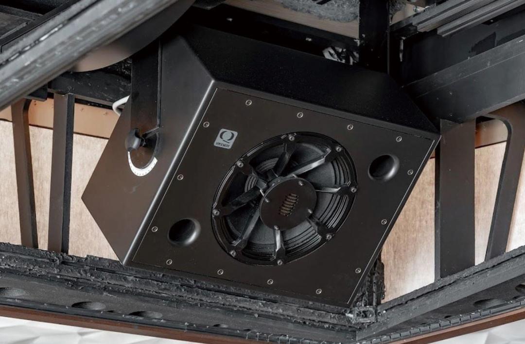 音频方面,对于房间“不太理想的声学条件(带有大量玻璃的非工程空间)”,Sabine的目标是1-10kHz的杜比全景声Premier Studio,实现线性高声压级,同时避免音箱和玻璃的相互作用所导致的失真,需要调试QUESTED(罗杰之声)和ME Geithain 2个品牌的10个定制音箱型号:即全套系统动用总共45个音箱,其中37个双功放音箱(QUESTED)和8个带有网络音频的低音炮(其中4个为ME Geithain品牌)。3种不同格式的阵列采用了DOLBY ATMOS的专业变体,可以像Atmos开发的伯班克工作室一样实现独特的邻近效果,例如:1、头部环绕式环绕声;2、床上移动的低音;3、从顶部的震荡向下冲击。全频音箱的顶盖预示着未来MIMO低音管理算法的到来:即主动房间校正。