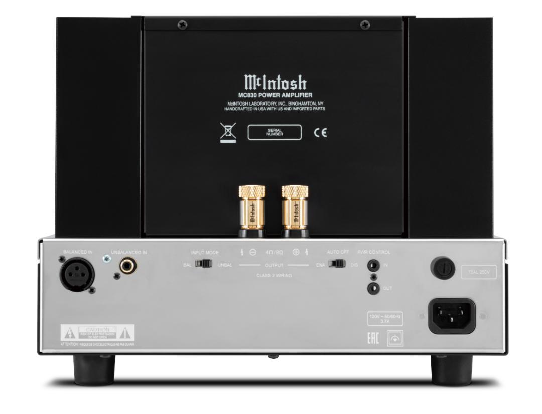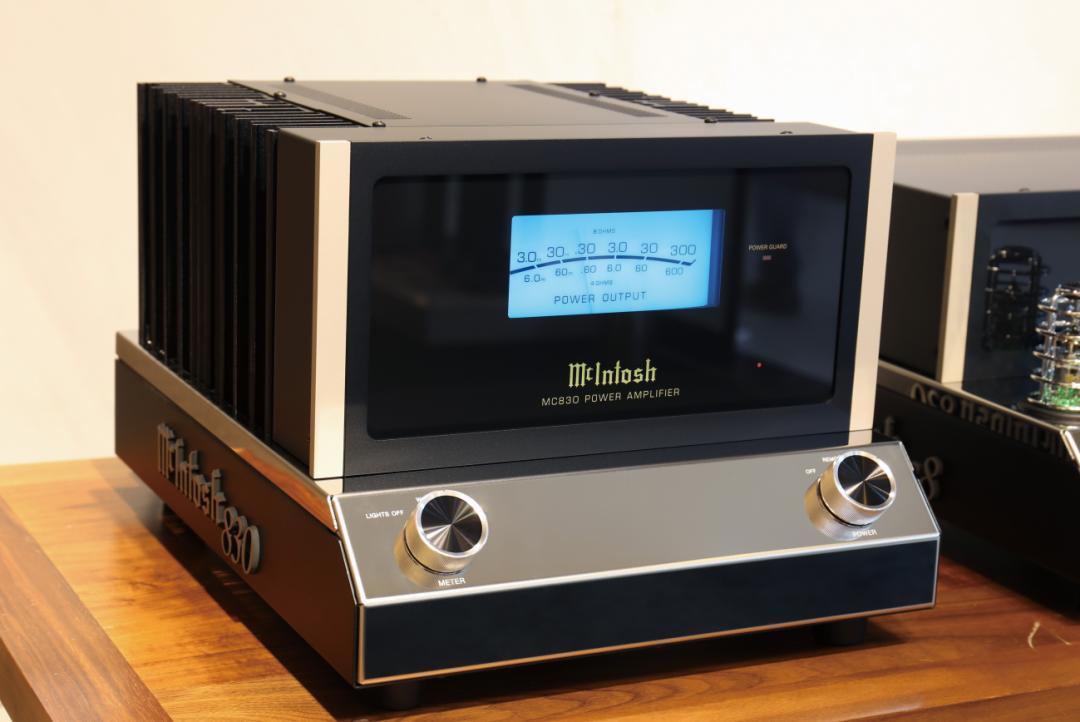 MC830單聲道後級放大器屬於晶體機,也就是我們俗稱的「石機」,其外觀設計同樣是致敬MC275,前面板並擁有經典的湖水藍表頭,絕對不辜負燒友的期望。功率方面,MC830採用直接交連輸出,在8Ω負載時輸出達到300W,4Ω時則提升為480W,為了應付大功率的需求,McIntosh自家設計Monogrammed HeatsinksTM可快速散熱,讓MC830維持最佳的工作溫度狀態。背面的輸入端子部分具備XLR與RCA。