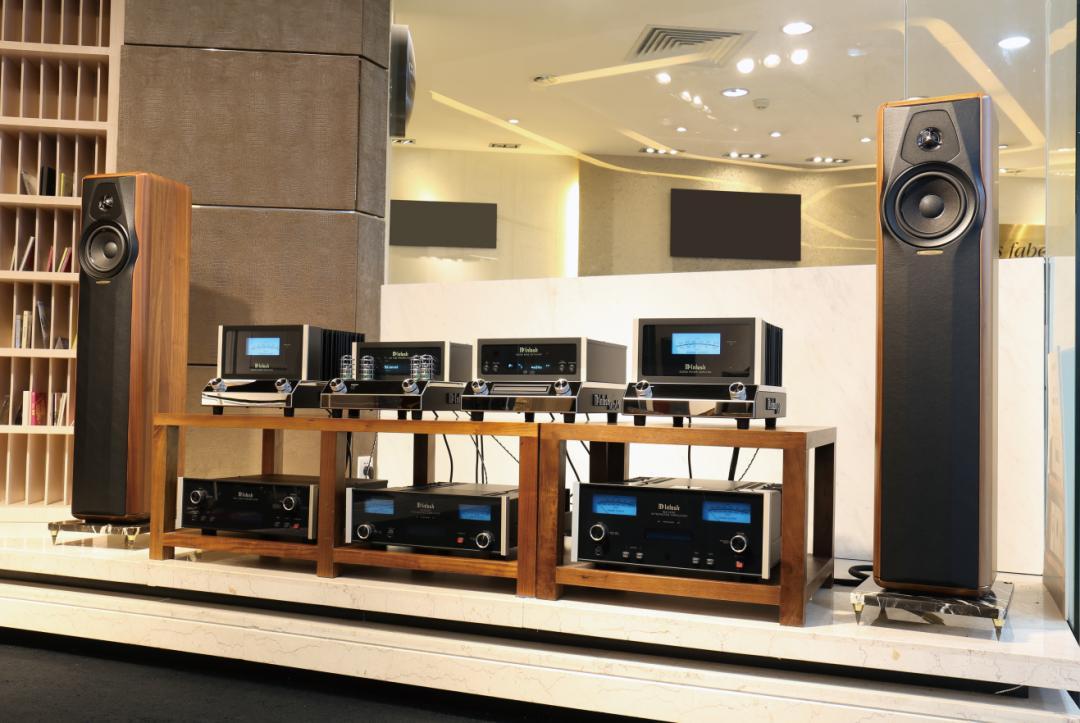 這次首先要介紹和體驗的McIntosh音響系統位於廣州著名的友誼商店內,該系統由MCD85 SACD/CD播放器、C8電子管前級放大器和2台MC830單聲道後級放大器組成,驅動意大利Sonus faber Maxima Amator座地式音箱,憑藉兩大世界頂級音響品牌聯手搭配,為現場奏響美妙動人的音樂樂章。